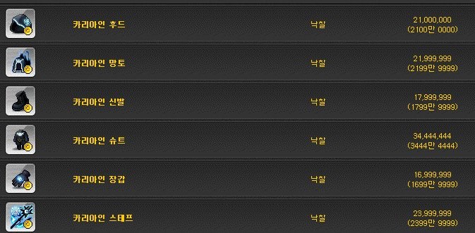 3억으로 이쁜 풀셋 코디를 맞추기란 사실 힘든데 카리아인 세트는 가능했다.