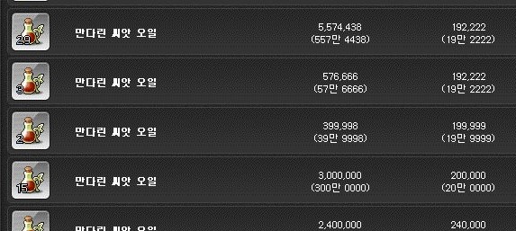 만다린 씨앗 오일은 개당 19만 메소. 10개가 필요하니 190만 메소를 지출하였다.