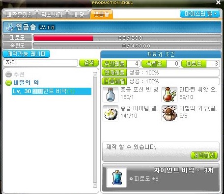 레시피 가격이 300만 메소이기 때문에 하나만 만들어서는 이득을 볼 수 없다.