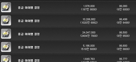 중급 아이템 결정은 개당 8만 6천 메소. 10개가 필요하니 86만 메소를 지출하였다.