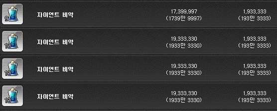 자이언트 비약을 만드는데 발생한 재료값은 371만 메소.