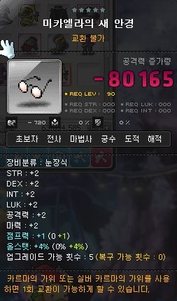 그에 반해 미카엘라의 새 안경은 올스텟 3%가 붙으면 6500만 메소 이상이다.