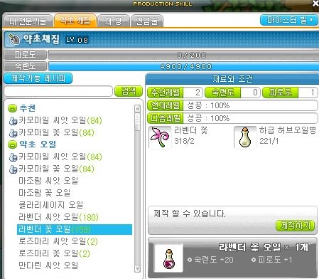 라벤더 꽃 2개와 하급 허브오일병 1개가 필요하다.